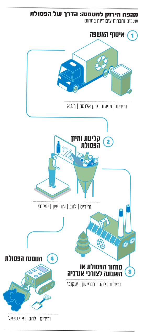 ואכן, בשנים האחרונות הצטיידו החברות הבולטות בתחום הפסולת בפעילויות לאורך שרשרת הערך, המורכבת משלוש נקודות מרכזיות: איסוף, מיון ומחזור והטמנה.